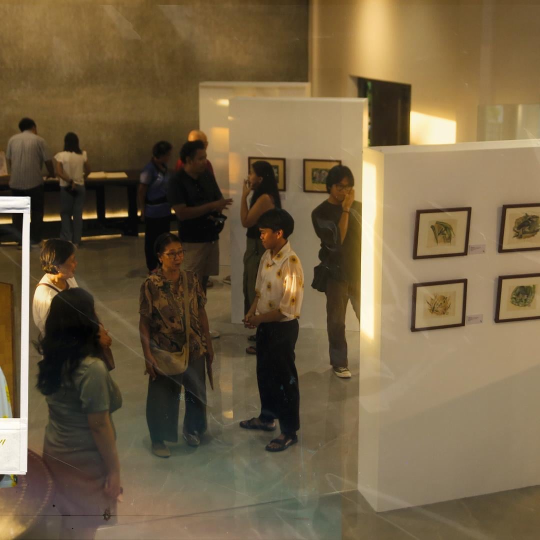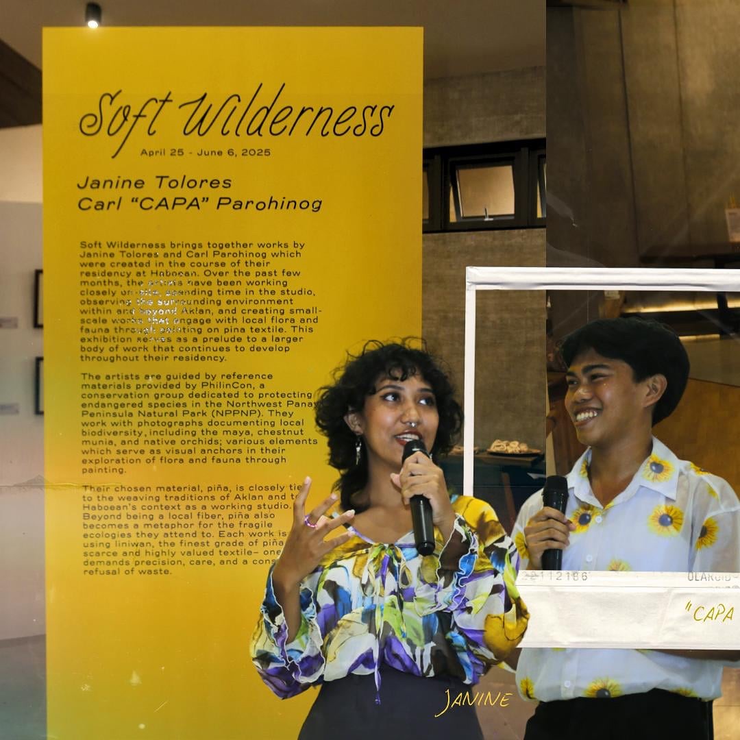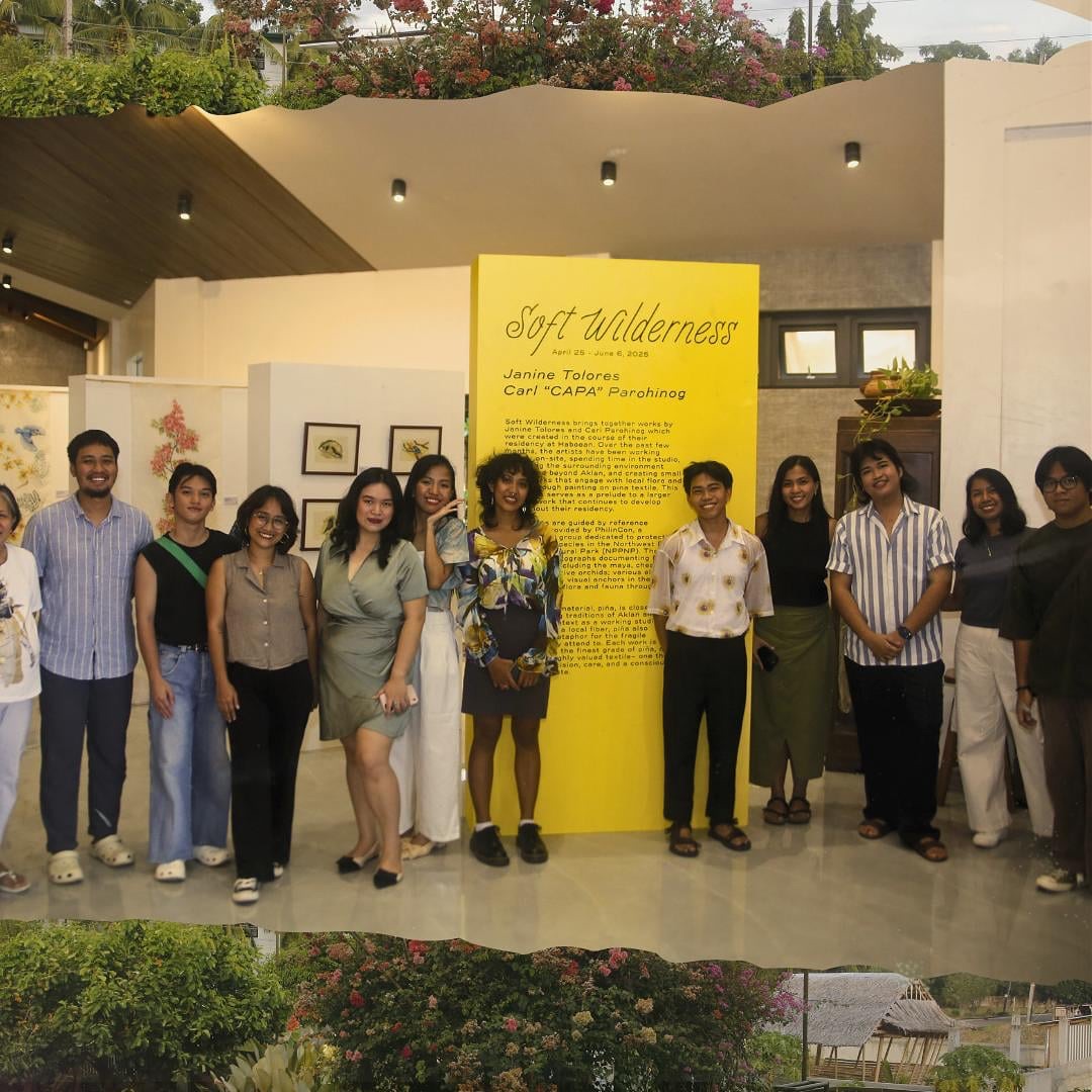 Soft Wilderness brings together works by Janine Tolores and Carl Parohinog which were created in the course of their residency at Haboean. Over the past few months, the artists have been working closely on-site, spending time in the studio, observing the surrounding environment within and beyond Aklan, and creating small-scale works that engage with local flora and fauna through painting on piรฑa textile. This exhibition serves as a prelude to a larger body of work that continues to develop throughout their residency. The artists are guided by reference materials provided by PhilinCon, a conservation group dedicated to protecting endangered species in the Northwest Panay Peninsula Natural Park (NPPNP). They work with photographs documenting local biodiversity, including the maya, chestnut munia, and native orchids; various elements which serve as visual anchors in their exploration of flora and fauna through painting. Their chosen material, piรฑa, is closely tied to the weaving traditions of Aklan and to Haboeanโs context as a working studio. Beyond being a local fiber, piรฑa also becomes a metaphor for the fragile ecologies they attend to. Each work is made using liniwan, the finest grade of piรฑa, a scarce and highly valued textileโ one that demands precision, care, and a conscious refusal of waste.